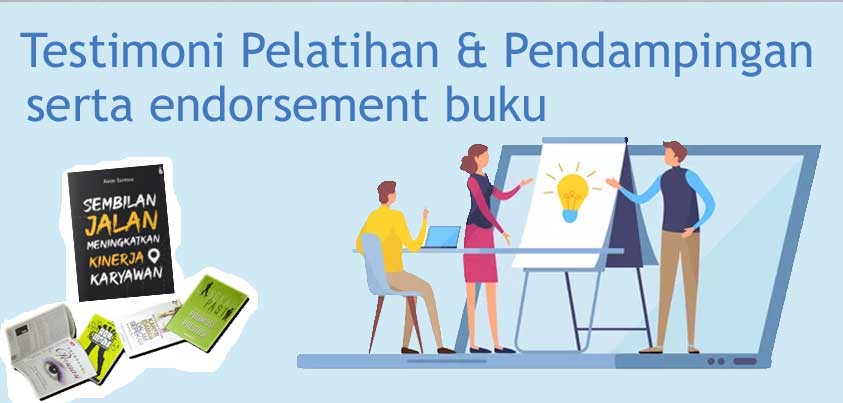 Testimoni Sudhamek AWS, Chairman GARUDA FOOD. Heri Soesanto, Corporate HR Director MAYORA. Paulus Bambang WS, Author Build to Bless Company dan Lead to Bless Leader. Yongky Susilo, Advisor to The Nielsen Indonesia. Ada belasan orang top ngasih testimoni. Baca sendiri deh... klik disini